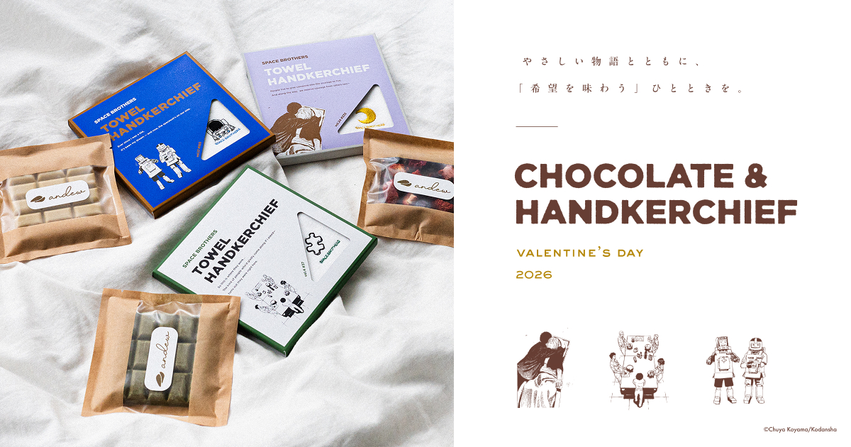 「世界一やさしいチョコレート」を目指すandewと、累計4,000万部を超える大人気漫画**『宇宙兄弟』**のスペシャルコラボセットが、本日よりついに販売開始となりました!